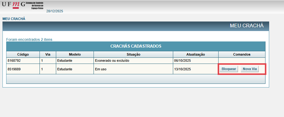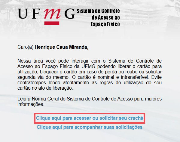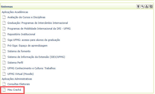 Acessar o minhaUFMG e clicar em Meu Crachá