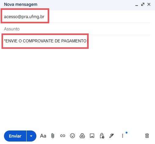 Enviar e-mail com comprovante de pagamento para acesso@pra.ufmg.br